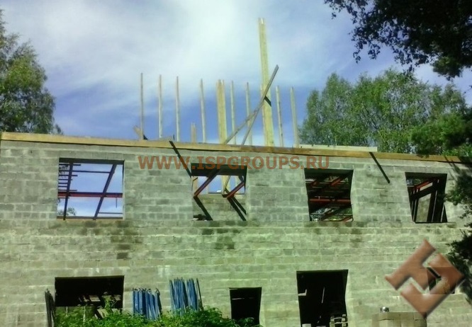 Верхняя часть стены дома станет основой для обустройства стропил, если он деревянный или построен из бруса. А если дом кирпичный, то необходимо установить оцинкованные шпильки в залитый железобетонный армированный пояс, а затем вмонтировать основной элемент несущей конструкции – мауэрлат. Вся стропильная система будет базироваться на нём.